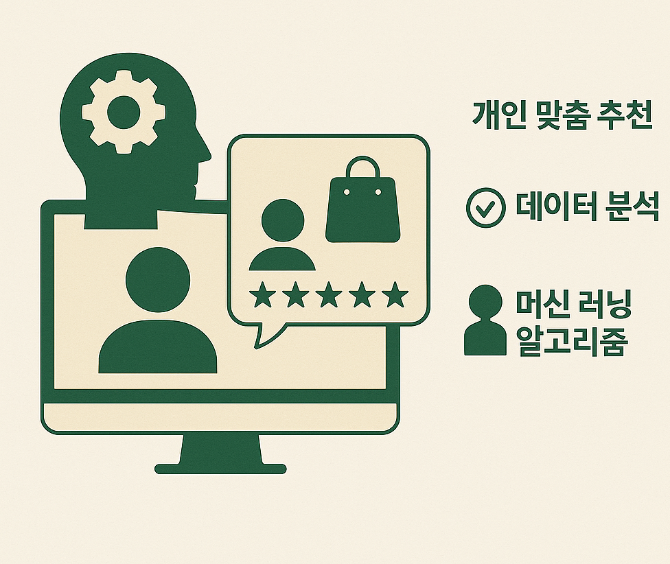 ✅ 목차개인화 추천 시스템이란 무엇인가AI 기술이 추천 시스템에 미치는 영향주요 알고리즘의 원리와 실제 활용 구조산업별 적용 사례 (이커머스, 콘텐츠, 교육 등)개인정보 보호와 윤리적 이슈개인화 추천의 효과를 높이는 전략최신 트렌드: 생성형 AI와 하이브리드 추천결론: AI 추천 시스템은 선택이 아닌 경쟁력이다1. 개인화 추천 시스템이란 무엇인가**개인화 추천 시스템(Personalized Recommendation System)**은 사용자의 행동, 취향, 상황, 맥락 정보를 기반으로 콘텐츠나 제품을 자동 추천해 주는 기술입니다.주로 이커머스, 스트리밍, 교육, 뉴스 플랫폼에서 활용되며, 추천의 정확도와 타이밍이 사용자의 만족도 및 구매 전환율에 직접적으로 영향을 미칩니다.2. AI 기술이 추천 시스템..